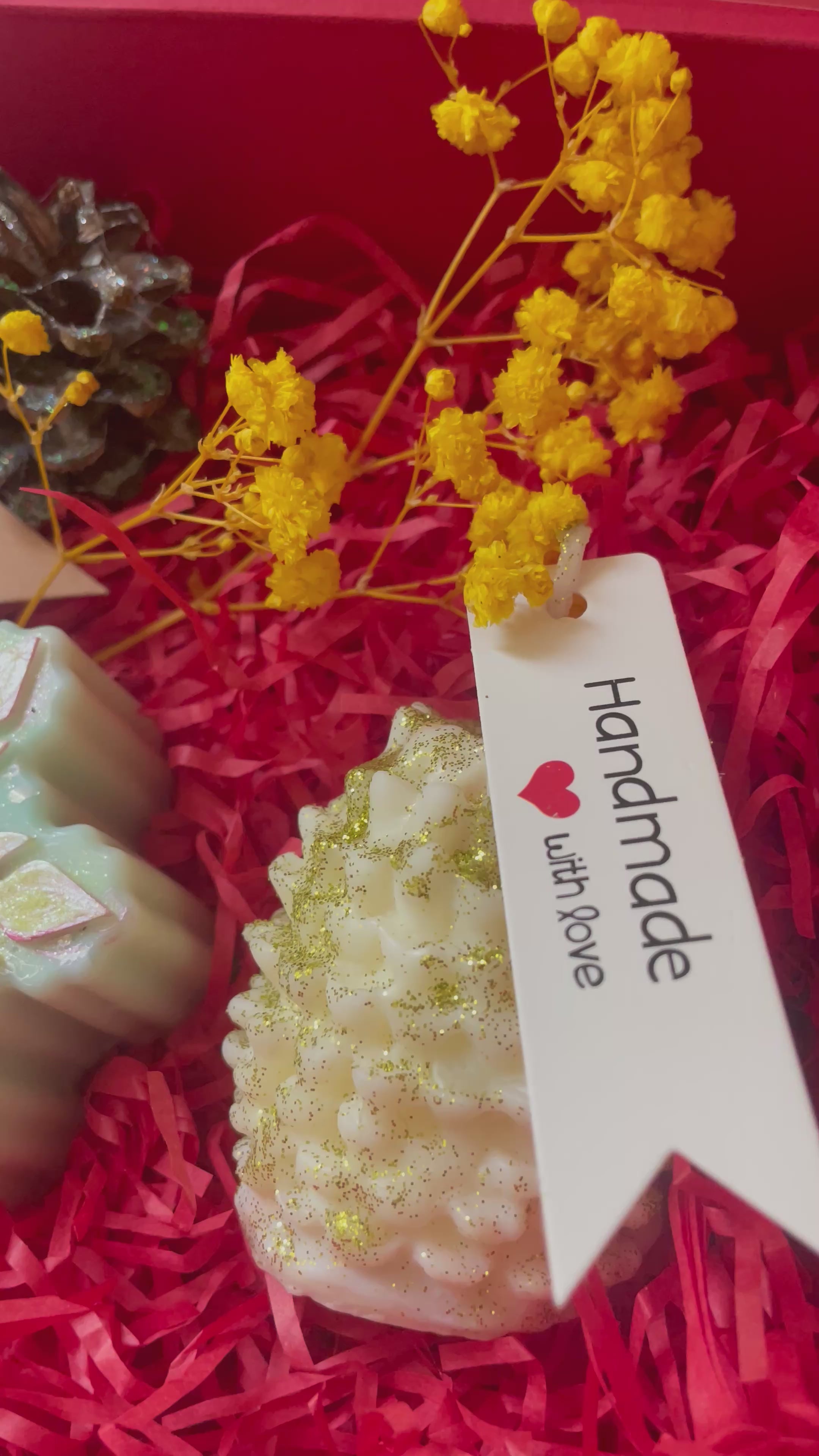 This exclusive box features four hand-painted soy candles of your choice, each individually painted by hand, making every piece a one-of-a-kind festive artwork.